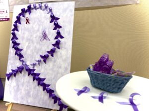 11月上旬から下旬まで、「パープルリボンツリー」を設置予定です。ご来館のみなさまによって書かれたメッセージカードとパープルリボンが、ツリーに彩りを添えます。ぜひメッセージカードにご記入ください。