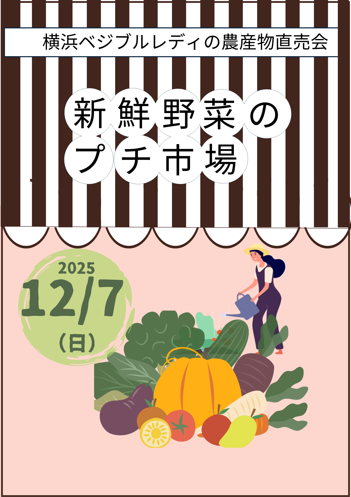 横浜市内の農家の女性が中心となって結成した「横浜ベジフルレディ」※による野菜の直売会を開催します。地元、横浜で育てた獲れたての新鮮な野菜をアートフォーラムあざみ野・エントランスロビーで販売します。旬を感じること間違いなし!ぜひ、お立ち寄りください!