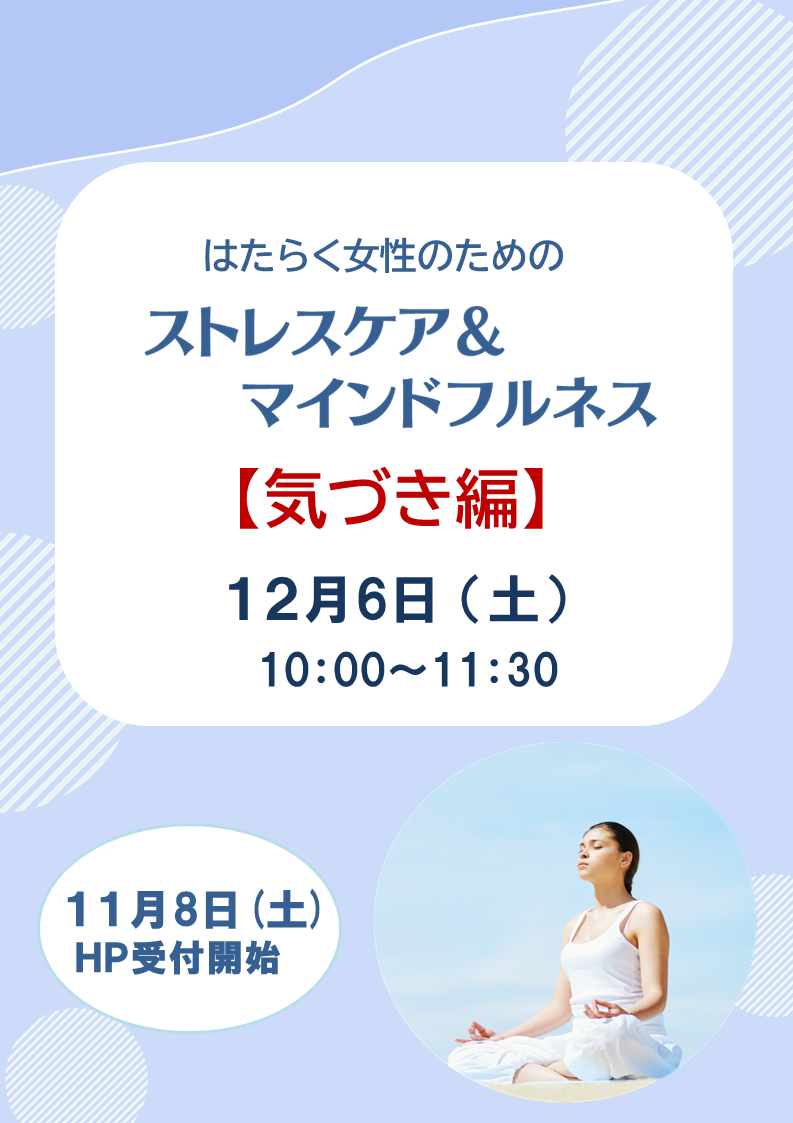 ♦12月20日(土)はたらく女性のためのストレスケア&マインドフルネス「心の解放編」にもご参加いただけます。