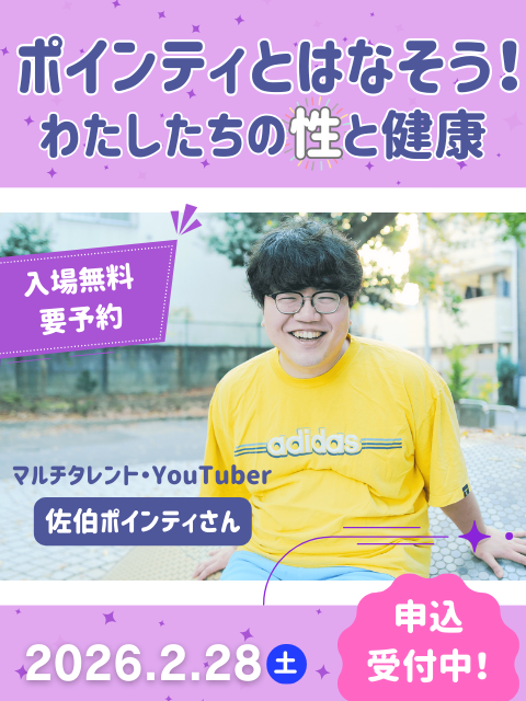 性や生き方のモヤモヤに明るく寄り添う人気YouTuberの佐伯ポインティさんと、ユースクリニックを運営している産婦人科医の門間美佳さんをお迎えし、性について楽しく学びます。